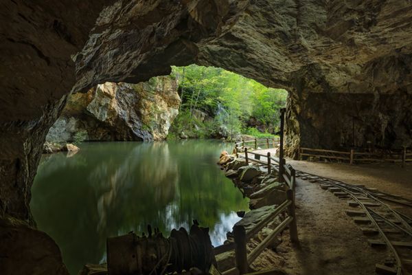 You can view the waterfall easily a few feet off the road, but for the best experience and photos, you should take the self-guided tour of the mine. In wet weather, you'll be treated to a couple of smaller waterfalls dropping off cliff into the pool. They can be included under the collective Bon Ami Falls name.