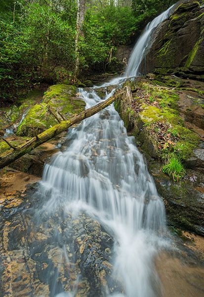 This is a pretty little falls that’s fairly easy to reach as bushwhacks go. Rhododendron drapes the banks and lush moss covers everything, creating a rain-forest feel.
