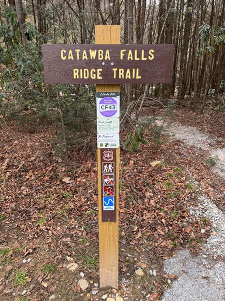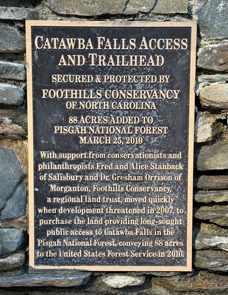 This trail begins to the right of the restrooms and leads to Lower Catawba Falls, Catawba Falls, and Upper Catawba Falls. You can return on Catawba Falls Ridge Trail. (017A-260708)