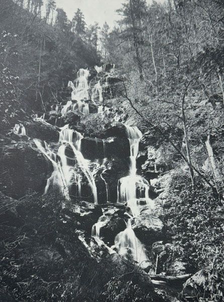 From Lower Catawba Falls it is less than 0.2 miles to the 107-foot footbridge over Chestnut Branch, and then another 250 feet to the base of Catawba Falls.