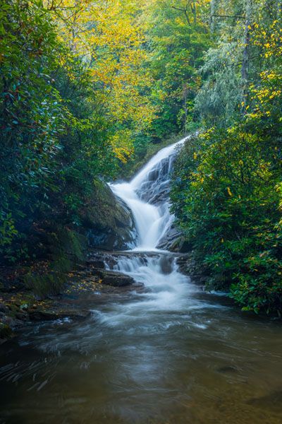 | Trailhead GPS: | 35.16468, -83.73076 GPS reading is from the viewing deck at the top of the falls. |