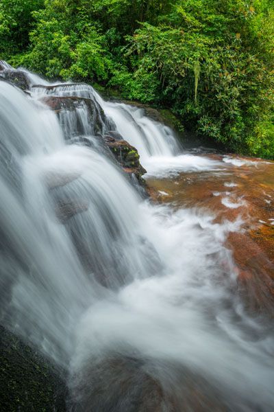 Sometime after I published the first edition of North Carolina Waterfalls in 1994, public access to the base of the falls was prohibited. You could still walk out to the top and view the falls from an overlook, but you couldn’t see much from there. After the second edition in 2005, Carolina Mountain Land Conservancy (now Conserving Carolina) began working with the landowner, enabling Transylvania County to acquire the property for a park. Everyone was happy that Connestee Falls was finally going to be protected. I was particularly excited that the county was going to create a park, as the old trail would be rebuilt, allowing full access to the falls again. I know many other people felt the same.