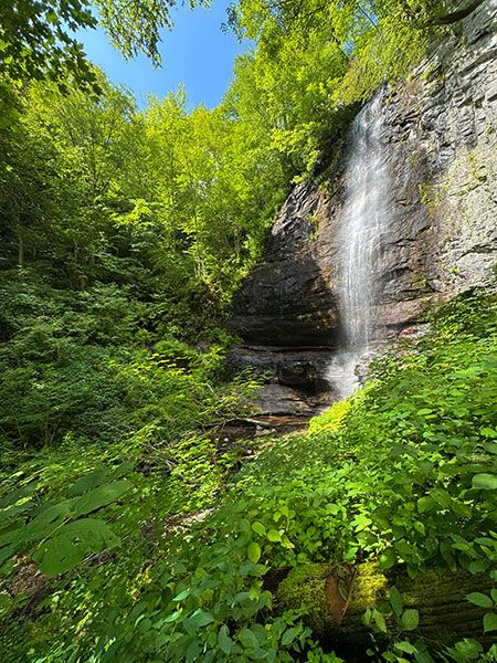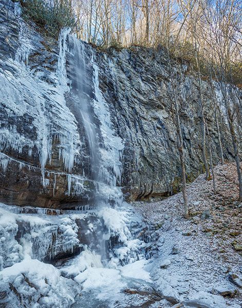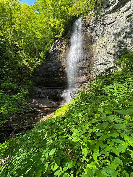 Cutler Falls lies on the headwaters of Justice Creek, a tributary of North Toe River that springs from the northwest summit of Spear Tops, a prominent landmark seen by motorists traveling US 19E. Thanks go to Southern Appalachian Highlands Conservancy for facilitating the protection of the 260-acre tract that includes this beautiful waterfall.