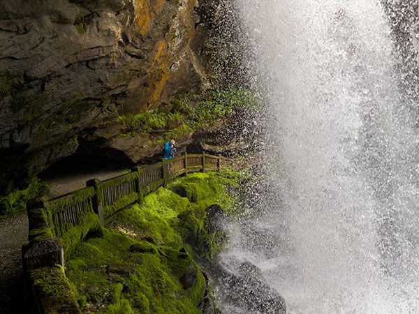 Pay the fee and follow the obvious trail to the base of the falls or to the boardwalk view of the falls.