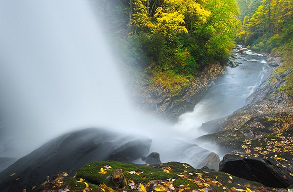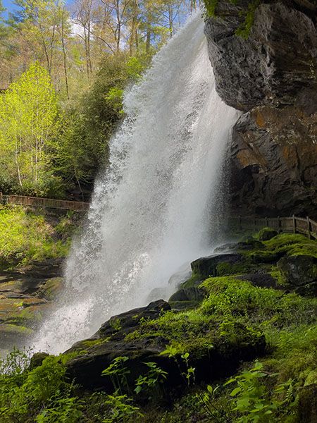 And wander they have. Dry Falls is among North Carolina’s most alluring waterfalls. Beauty, power, geology, biology, photography, history, ease of access, and fun all come together here. Few waterfalls in the state have as much to offer so many different people. About the only thing it doesn’t have is an opportunity for swimming or wading. That’s a big no-no here.