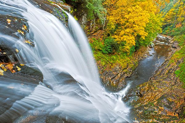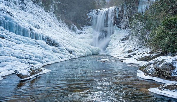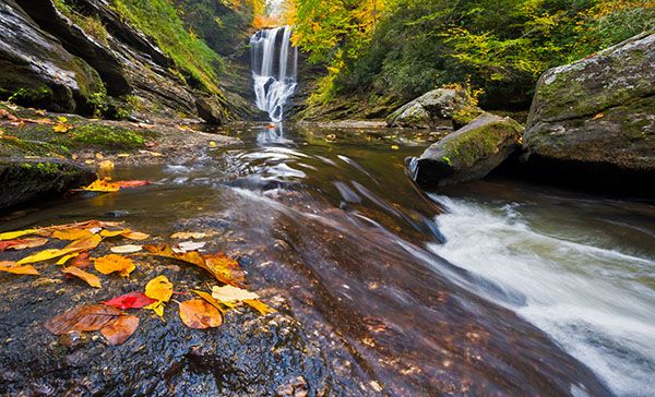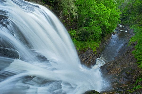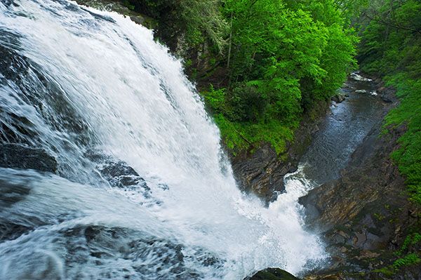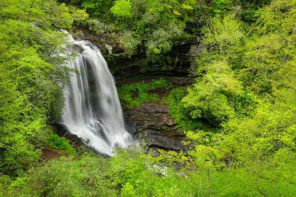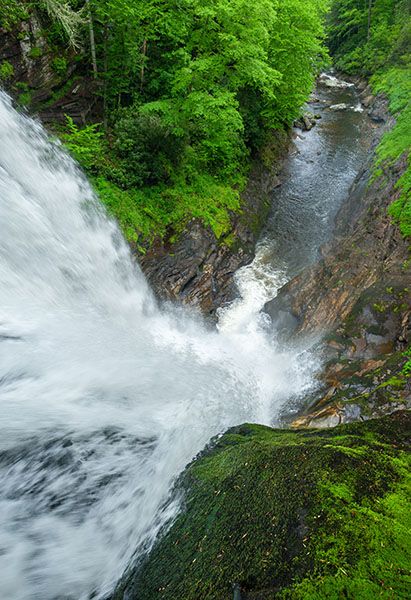 From the junction of US 64 and NC 106 in Highlands, drive 3.15 miles west on US 64 to the signed parking area on the left. This is 13.6 miles east of US 23/441 in Franklin.
