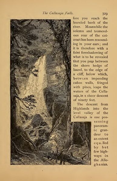 “Here is a fall upon whose virgin rocks no quack has painted his shameless sign; whose precipices have not been invaded by the mob of the grand tour; whose solitary magnificence thrills and impresses you as if in some barren land you came upon the dazzling lustre of a priceless diamond. But to this, and its brother a few miles below, the feet of thousands of the curious will hereafter wander.” Edward King, in The Great South, 1879
