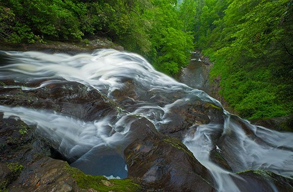 Read the Cullasaja River section for an overview of the river and its waterfalls, including a list of landmarks with mile markers. You can find it by clicking the Little Tennessee River Basin button on the Rivers page.