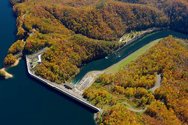 To view the dam from the bottom, turn left at the stop sign and drive about 2.9 miles to the bridge over Little Tennessee River. Turn right just past the bridge and drive 1.0 miles to the dam.