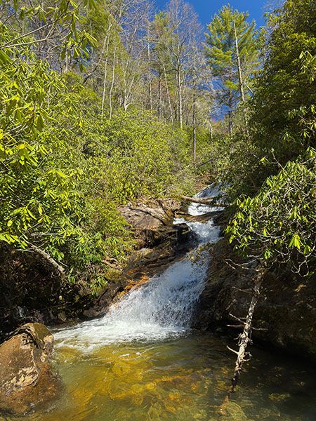 - From the third falls viewpoint, there is an unofficial scramble path leading down to the base of another section. This path is sketchy, and you must wade the creek to view the falls.