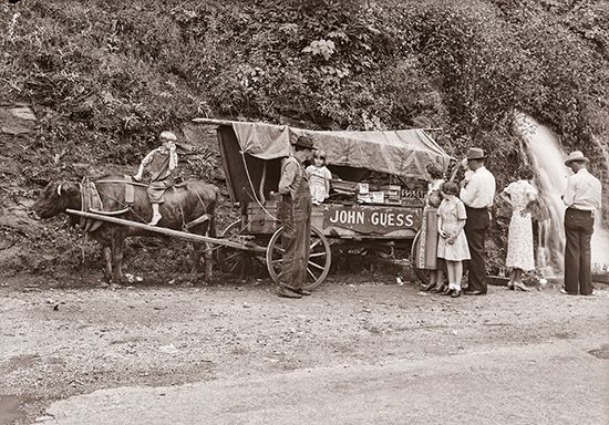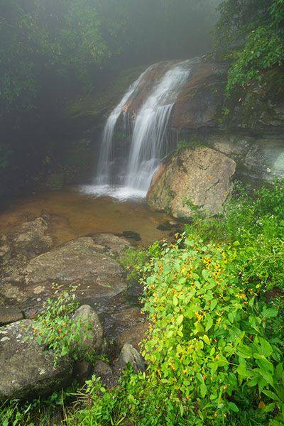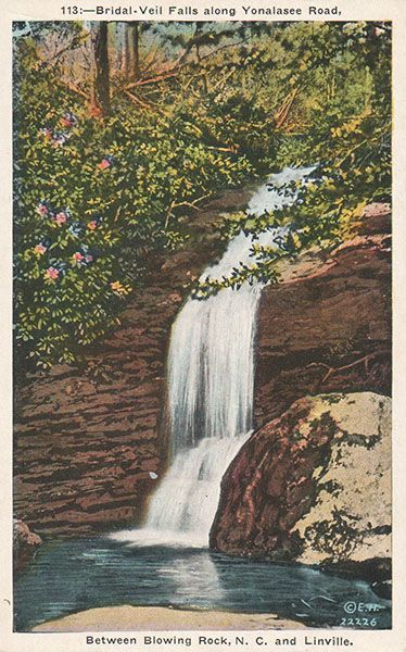 From the junction of US 221 and Blue Ridge Parkway, near the entrance to Grandfather Mountain, drive north on US 221 for 7.3 miles to the falls. This is 1.8 miles south of Holloway Mountain Road.