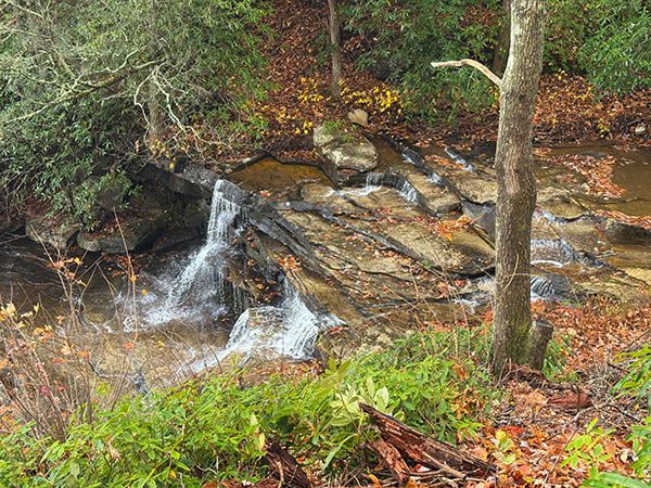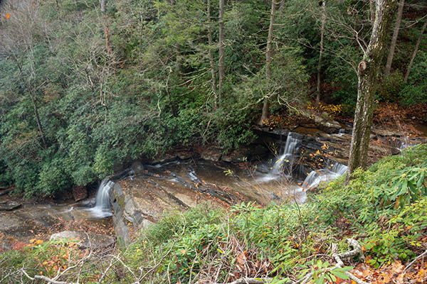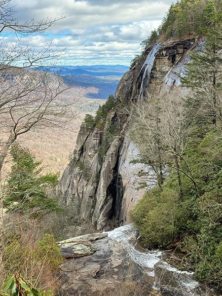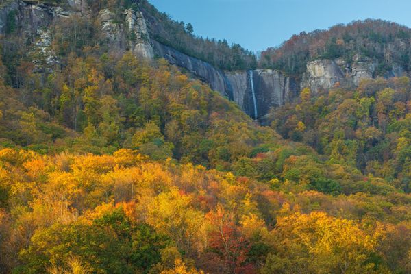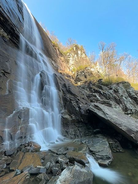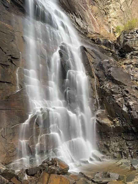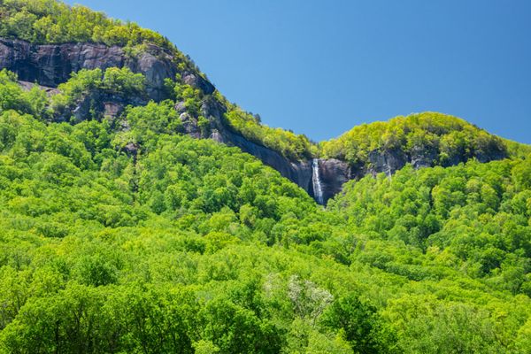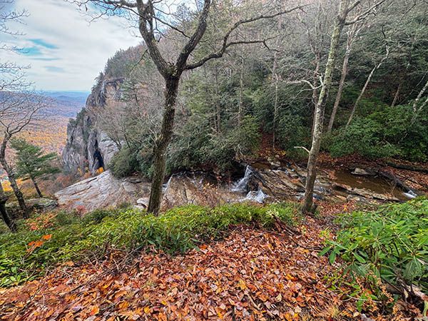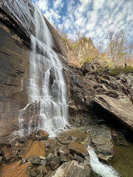 Follow Hickory Nut Falls Trail to the base of the falls.