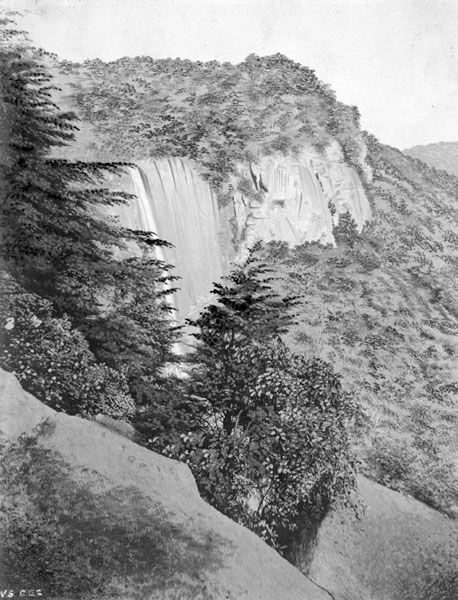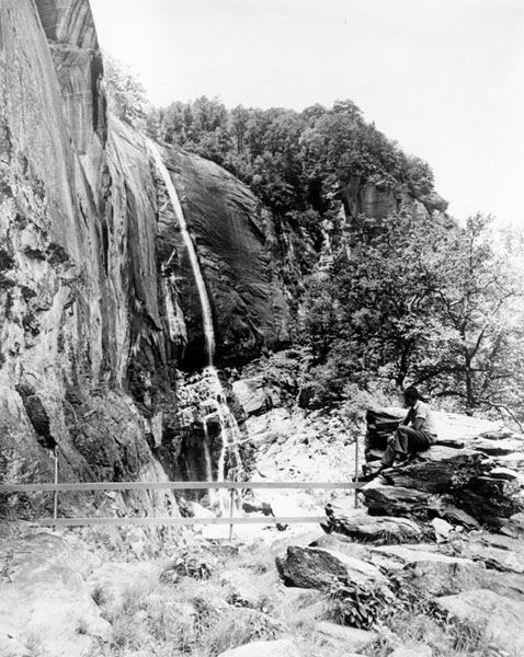 Hickory Nut Falls viewed from Chimney Rock Village. (057A-145767)