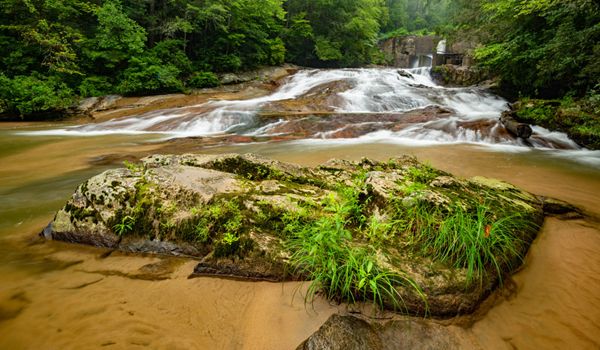 Although an old dam sits on top of this waterfall, it’s still a scenic spot and is very easy to reach. In fact, you don’t even have to get out of your car as it is visible from the downstream bridge. The best view is from near the base, accessed by a short, easy walk.
