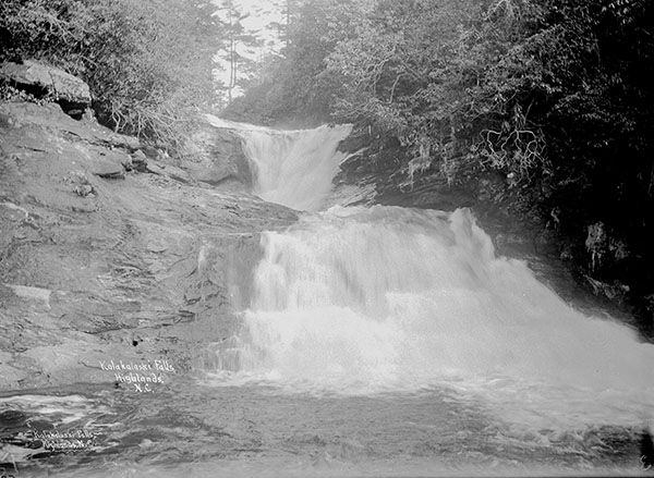 Kalakalaski Falls was one of my early introductions to puzzling waterfall information. Nearly everything I read stated that the waterfall was a series of eighteen small falls downstream from Lake Sequoyah on Cullasaja River. The statement is still repeated today. A few other reports stated that Lake Sequoyah inundated the waterfall, a claim also repeated today. None of this is true.