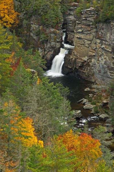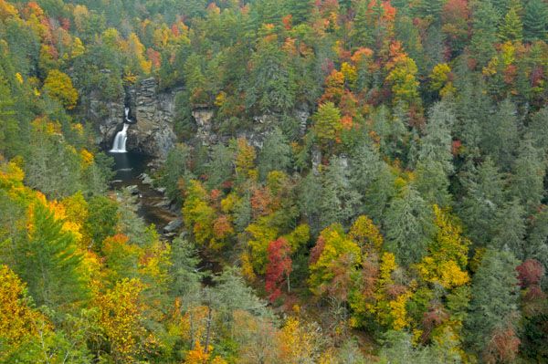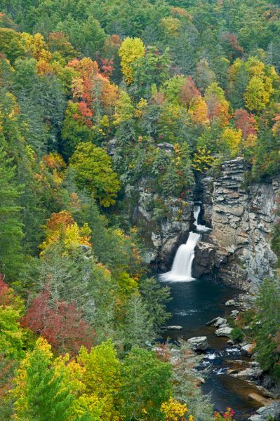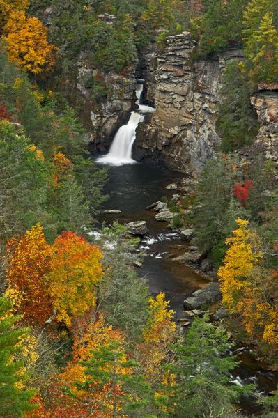 Autumn view of Linville Falls from Plunge Basin Overlook. (064A-201506)