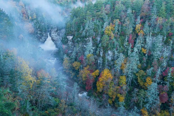 The most storied waterfall in North Carolina, Linville Falls is unparalleled in its combination of beauty, striking geology, deep history, and outstanding recreational opportunities. It has been a favorite subject for artists, writers, poets, photographers, scientists, and romantics since at least the early 1800s. North Carolina doesn’t have an officially designated state waterfall, but if it were to choose one, Linville would be the perfect choice.