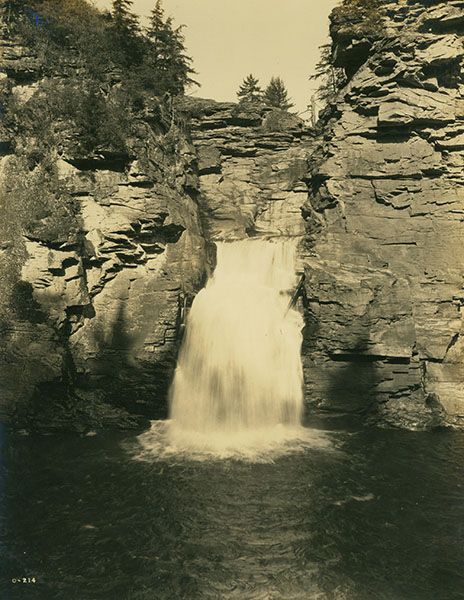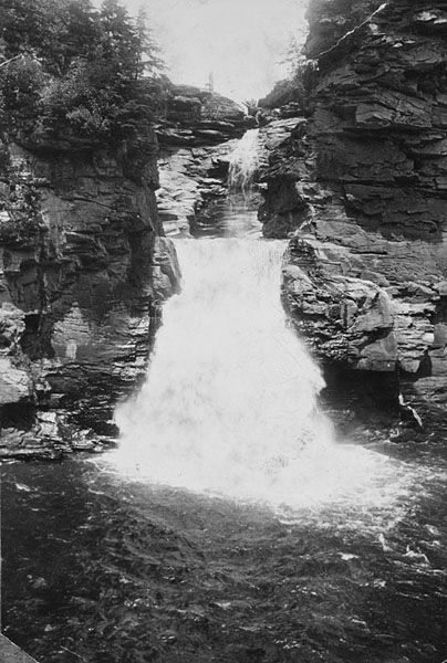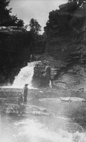 At Upper Falls Overlook (river-right side), you can see the small upper waterfall and the large pool on the upstream side and look downstream to see the river flowing through the chasm at the falls.