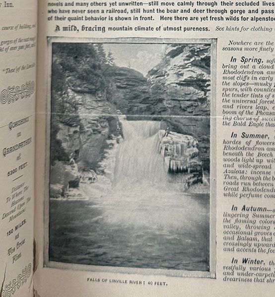 Literature abounds about Linville Falls and Linville Gorge, but it can be a daunting task to assimilate the information from all the different sources. It sure was for me while preparing this page! Here are three highly recommended resources that make it much easier. In addition to these, the Literature section features some juicy historical writings about Linville Falls. The entire books these excerpts come from are worth some quality reading-chair time for anyone interested in Western North Carolina history.