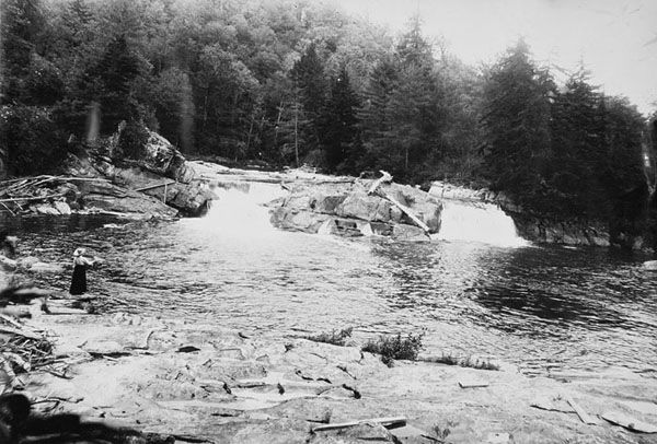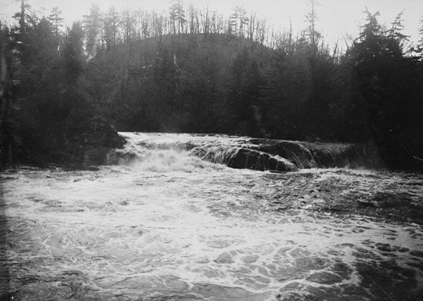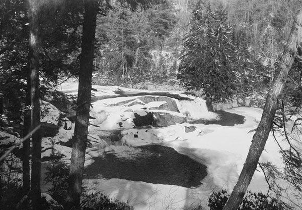 Plunge Basin, on river right, is where the trail ends at the river near the base of the falls. You can’t see anything from this point. To view the waterfall, scramble upstream along the rocks. If the water level is above normal, this is a difficult trek, made much easier if you get your feet wet.