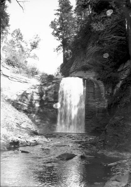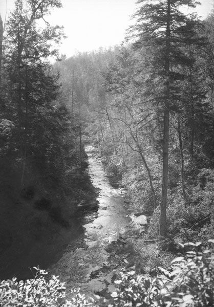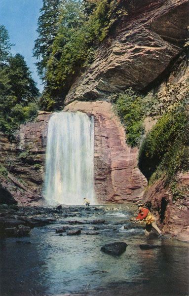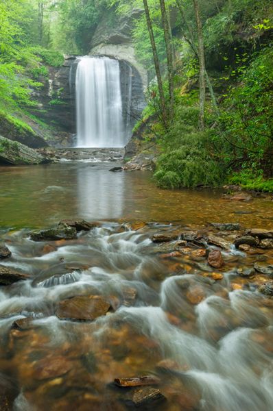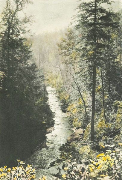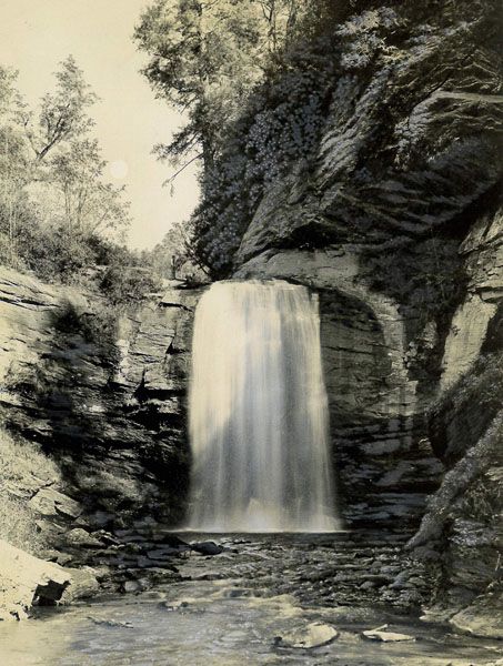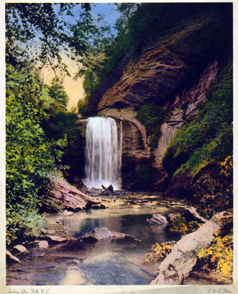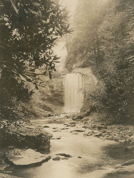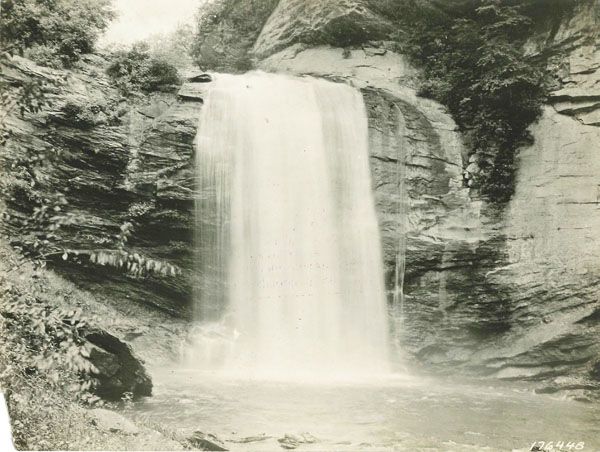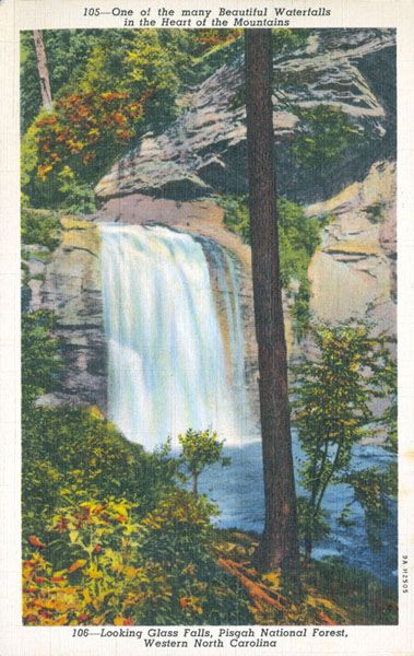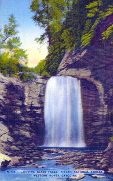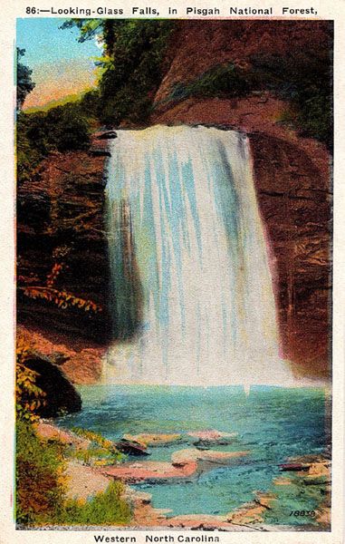 The waterfall, and most of the land anywhere close, was part of George Vanderbilt’s enormous estate, from which the Pisgah District of the national forest was created. When Vanderbilt sold his timber interests in Pisgah, he reserved twenty acres surrounding Looking Glass Falls in the logging contract.134