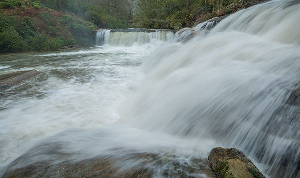 A path follows the river downstream from Mill Shoals to Bird Rock Falls, passing Pulpit Falls on the way.