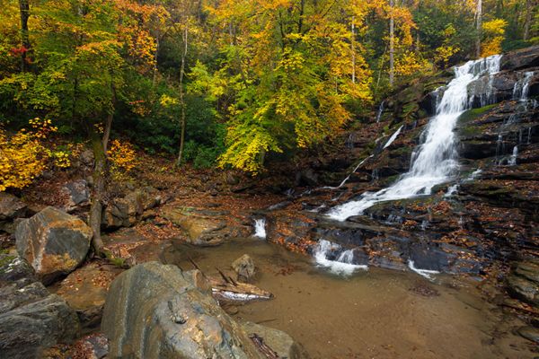 Well worth the longish hike and creek wade, Milton Bradley Falls is a delightful sight and a terrific photo subject. It’s the first waterfall you come to on a hike to see Bradley Cooper Falls, Marilou Bradley Falls, and Cavern Falls, and it's arguably the most scenic. It’s also by far the easiest of the bunch to reach. If you like waterfalls that tumble over countless mini-ledges, you’ll love this one.