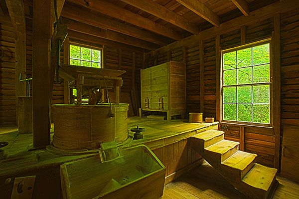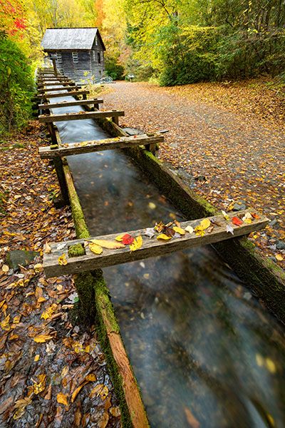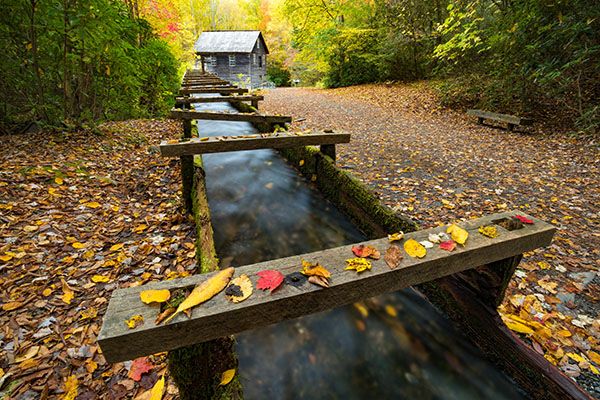 The parking area for Mingus Mill is located off Newfound Gap Road (US 441), 0.4 miles north of Oconaluftee Visitor Center.