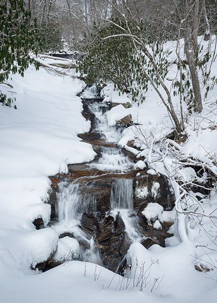 From the junction of NC 16 and NC 88, a few miles west of Jefferson, drive 0.6 mile west (toward Jefferson) on NC 16/88 and turn left on Cox Road (SR 1156). The road changes to gravel at about 1.3 miles. At 1.55 miles, you’ll come to the waterfall, on the right.