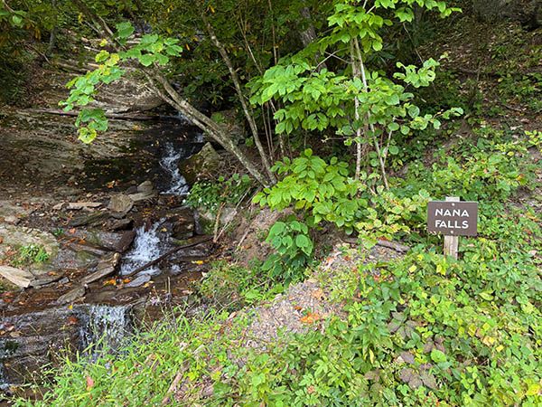 Although Nana Falls is small and unremarkable, the overall setting is scenic, with the pastoral South Fork New River flowing right beside the road across from the waterfall. Travelers on Blue Ridge Parkway and those visiting the frescoes in nearby Glendale Springs will find the side trip to this falls an enjoyable side trip.