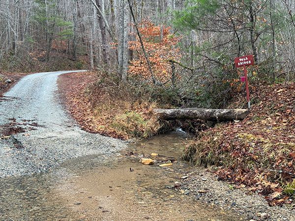 From the junction of US 64 and I-40 in Morganton, drive west on US 64 for about 15 miles and take the NC 226 exit. Turn left at the top of the ramp and drive east for 7.2 miles, then turn left on Jonestown Road (SR 1733). Drive 1 mile and turn left on Melton Road (SR 1732). After 0.6 miles on Melton Road, you’ll come to a fork. Go right on the unpaved Old CCC Road (SR 1731). This road is rough in places and has a creek ford.