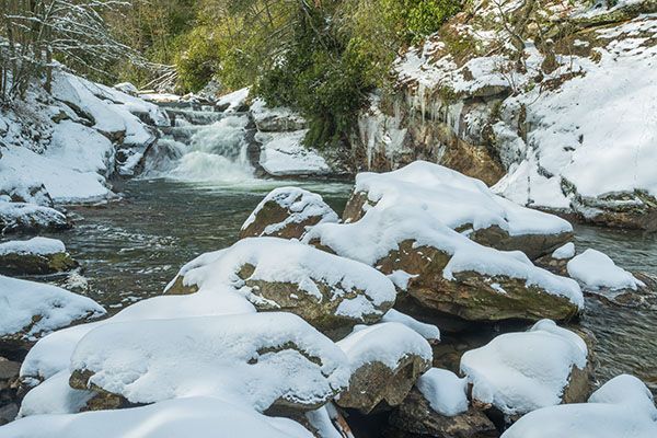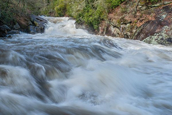 Like Bridal Veil Falls upstream, Quarry Falls is among the most viewed waterfalls in North Carolina given that is right beside and clearly visible from US 64. The easy access makes it hugely popular, especially on summer weekends when crowds of young people hang out all over the falls.