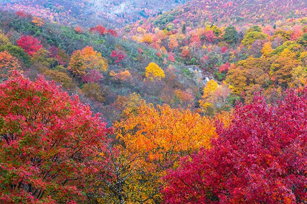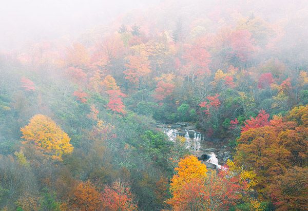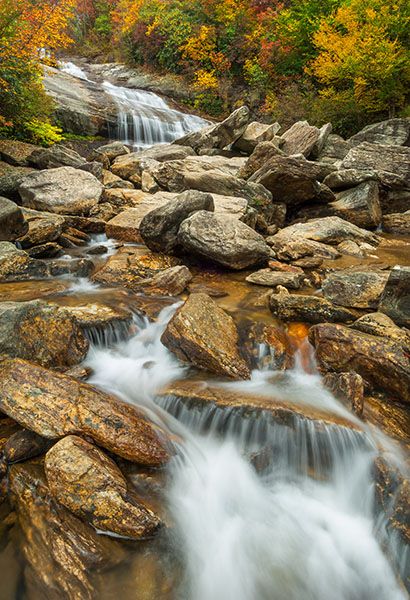 The three waterfalls in Graveyard Fields—Yellowstone Falls, Second Falls, Upper Falls— are accessed from Graveyard Fields Overlook on Blue Ridge Parkway, Milepost 418.9. The overlook is roughly halfway between US 276 and NC 215.