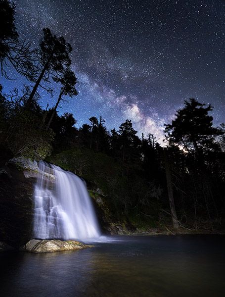 From US 64 in Cashiers, drive 4.05 miles south on NC 107 and park in the paved pullout on the left.