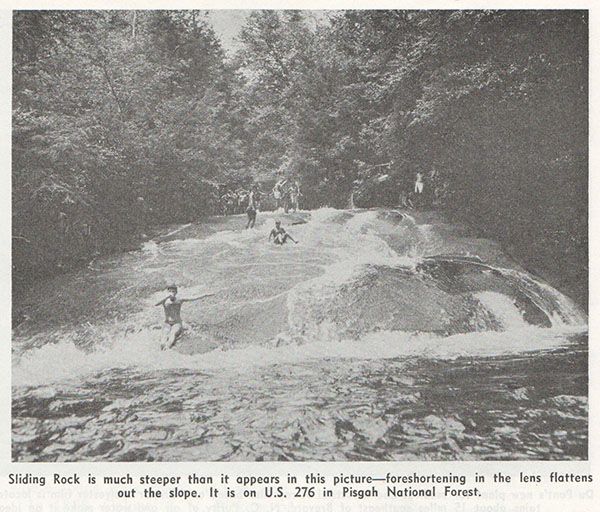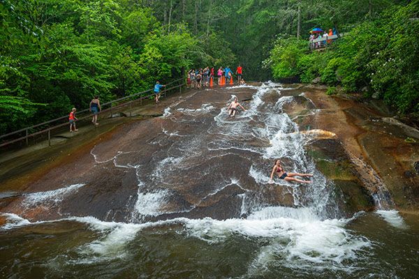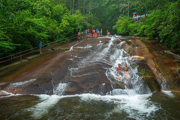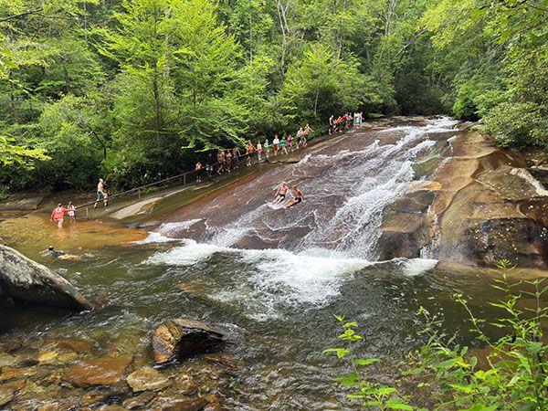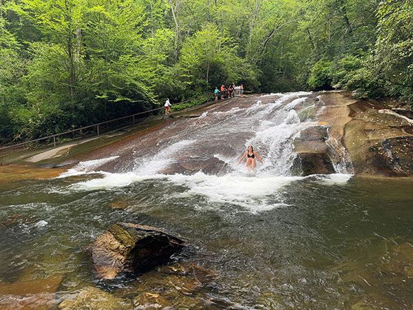 In the summer season, a small fee lets you slide down the falls as many times as you like. A bathhouse gives you a place to change clothes and a lifeguard watches out for you. The observation deck at the base washed away during Tropical Storm Fred in 2021, but there is plenty of room at the base for viewing and making photos.