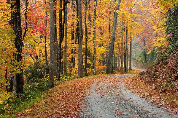 South of Hendersonville, take Exit 53 off I-26 onto Upward Road. Drive east (away from Hendersonville) on Upward Road 1.6 miles and turn right on Big Hungry Road (SR 1802). The road forks at 0.5 miles; stay left to remain on Big Hungry Road and continue 0.25 miles to another fork. Bear right at this fork and drive 4.4 miles and turn right on an unpaved road. A gravel parking area is on the left at the start of the road. This is the trailhead for Emily Falls.