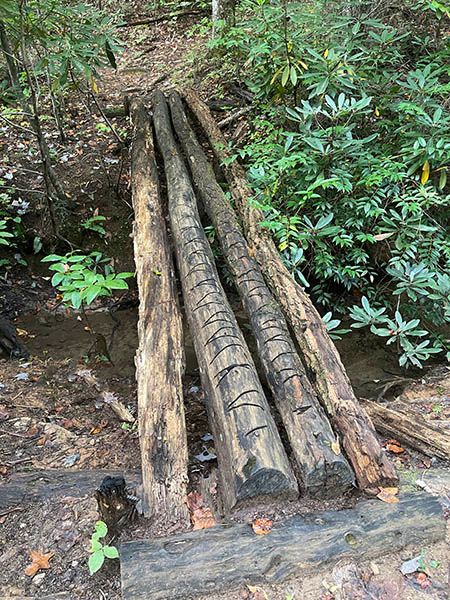 Sketchy footlogs over Stairstep Creek. (002F-crossing)