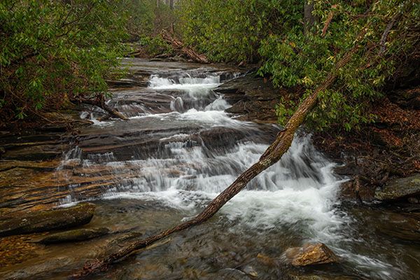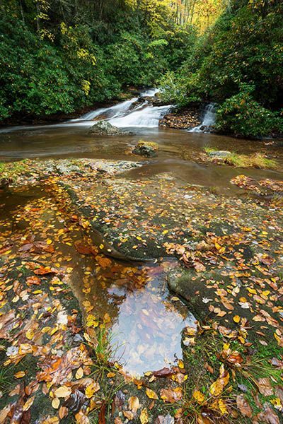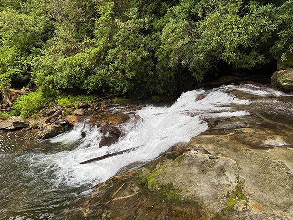 This is one of three falls within a three-mile section of US 276 that many people drive by without having a clue that they just passed a scenic waterfall right beside the road. None of the three can be viewed well from the road, though. You’ll need to scramble a little on makeshift paths to reach them.